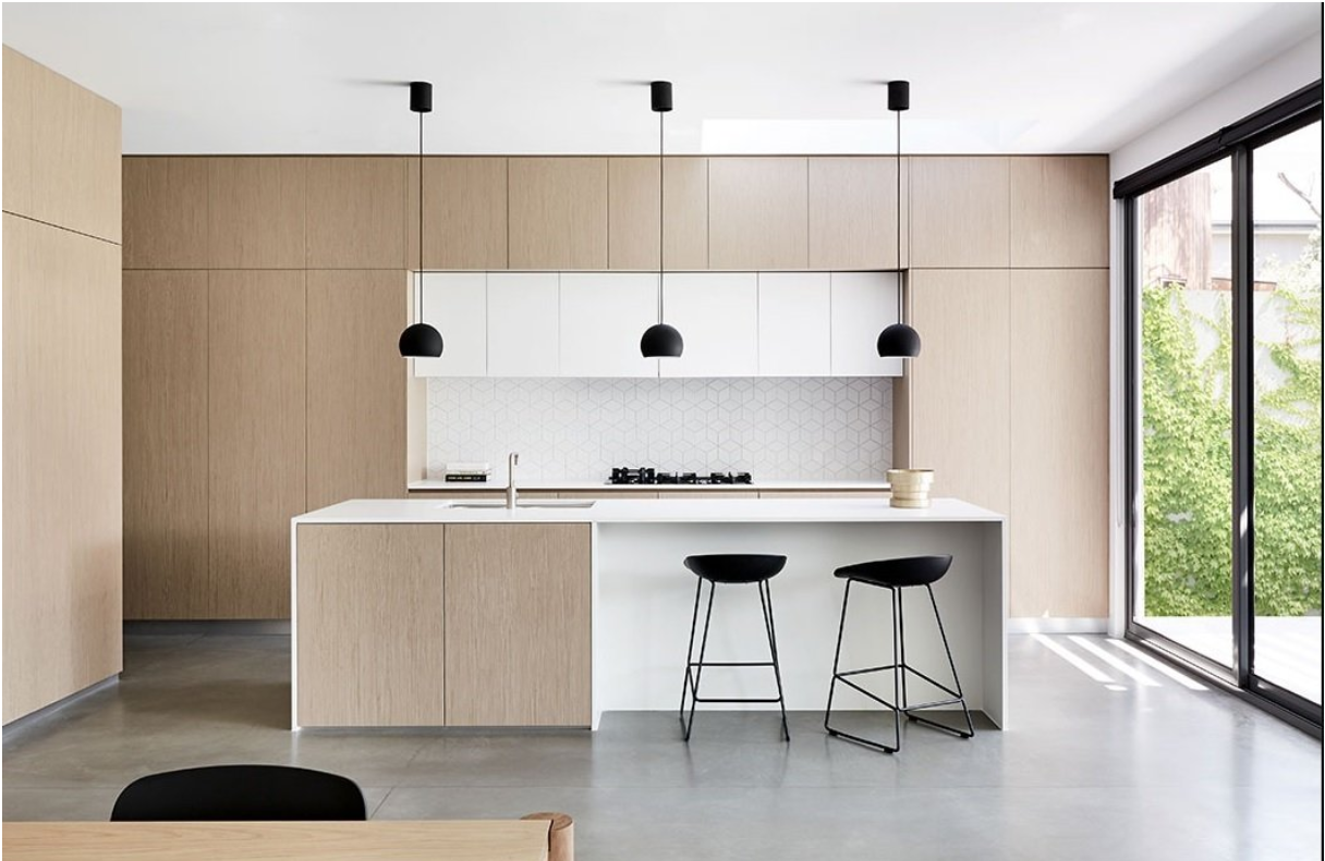 Because less is more. Having minimal finishes will create a cleaner looking kitchen. Try to limit the kitchen joinery to only three different colours or materials.